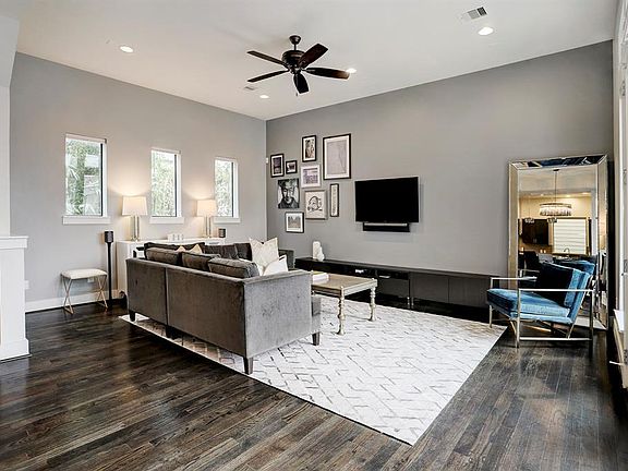 Fabulous East Montrose home with majestic Downtown skyline views! This soft contemporary-styled home is designed for a discriminating lifestyle. The exceptional, open floor plan is richly complemented by luxurious hardwood floors, soaring ceilings & large windows that allow for natural light to spill inside. The gourmet kitchen is a chef's delight, offering an island with an overhang for bar stools, gorgeous granite countertops, sleek stainless appliances & an abundance of both counter & cabinet space. The gracious master bedroom hosts a marble-tiled bath, featuring a soaking tub, separate shower, double vanities & an expansive walk-in closet. Entertain with ease on this rooftop terrace, with envious, expansive north, east & westward views. The back yard boasts artificial grass for year-round green space. Tucked into the edge of Montrose & Midtown, enjoy the best of both with easy access to parks, shops, restaurants, Downtown, the Med Center & major freeways.