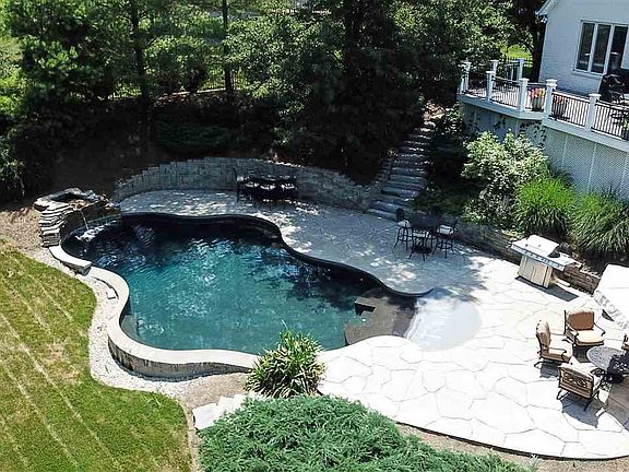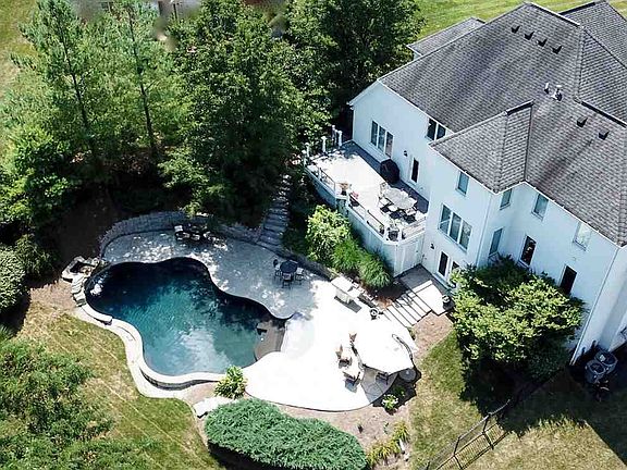 Stunning home w/attention to detail! Private .65 acre wooded lot! 6 bed/6 ba luxury home w/finished custom lower level w/custom cheers bar w/full kitchen & walkout basement. 3 car garage, 3 fireplaces, 1st floor bedroom & full bath, resort luxury inground gunite heated pool w/beach area, newer dual zone heating & cooling, ultra master suite w/ luxury master ba & 23x13 master closet. Custom molding, columns & trim detail, casement windows, luxury quartz brick exterior. Custom inlayed hardwd flooring, granite/marble through out, surround sound, maintenace free decking & aluminum fencing. No Hoa