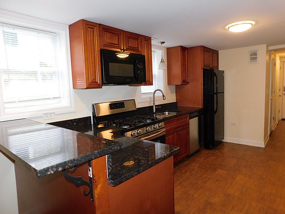 Evanston- Big, bright garden 1+BR in 3-Flat close to transportation, restaurants and shopping! Over 800 square feet. large rooms, newer kitchen with lots of storage and counter space, dishwasher, microwave, breakfast bar, updated bath, sparkling hard wood floors, central air, in unit laundry, den and big yard. Easy street parking.