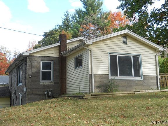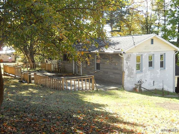 Great winter project on a beautiful lot! Nearly an acre backing to a ravine and creek. The home and outbuildings need a full rehab but offer great potential. Features include vinyl siding, stone exterior, newer windows, an older architectural roof, and a large deck overlooking the property. Inside offers pine paneling, an updated kitchen and bath with whirlpool tub, and first-floor laundry. The walk-out basement includes a workshop and potential additional living space, plus a 2-story garage with loft and large shed.