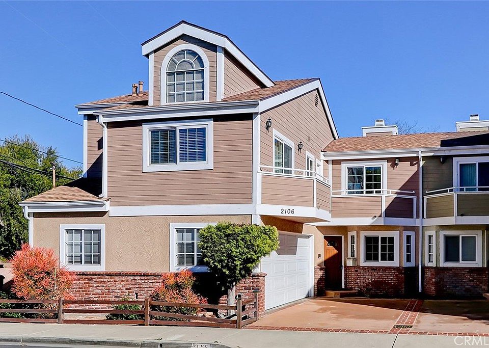 Welcome home to this lovely home in Redondo Beach!  Enter into a cozy living room featuring a brick fireplace and hardwood floors with recessed lighting and a picture window bench seat!  Then flow into the dining area and remodeled kitchen with granite counter tops and siding glass doors to the huge backyard.  The backyard features a large sunny brick and paver patio for great outdoor entertaining! Upstairs you will find 2 large and bright bedrooms that share a large full hallway bathroom.  The third primary bedroom has vaulted ceilings and an en-suite bathroom with soaking tub, shower and walk in closet.  There are 2 balconies upstairs facing west for a great breeze and sunny skies!  The attached 2 car garage with extra storage and laundry has access direct to the kitchen as well as the back patio.  You do not want to miss this great home in Redondo Beach walking distance to restaurants, parks, shops and award winning schools.
