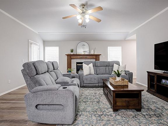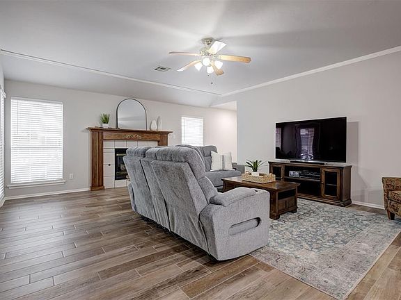 Meticulously Maintained and Beautifully Updated!! If you are looking for low maintenance living in a 55+ community, this is the one for you! 1414 sqft/ Living + Study/ 2 Bed/ 2 Bath/ 2 Car Garage! New Wood look tile throughout (5/25)! Open living/kitchen/dining, plus a separate flex space for a study, library, sewing room, or whatever suits your needs! STORM SHELTER in garage! Fenced Side yard! Additional upgrades include HVAC ('21), Granite countertops throughout, sinks and faucets, Bathfitters shower floor in primary bath, Interior & Exterior Paint ('23), ROOF with Class 4 Shingle (11/24)! Nothing left to do here, but move in!!