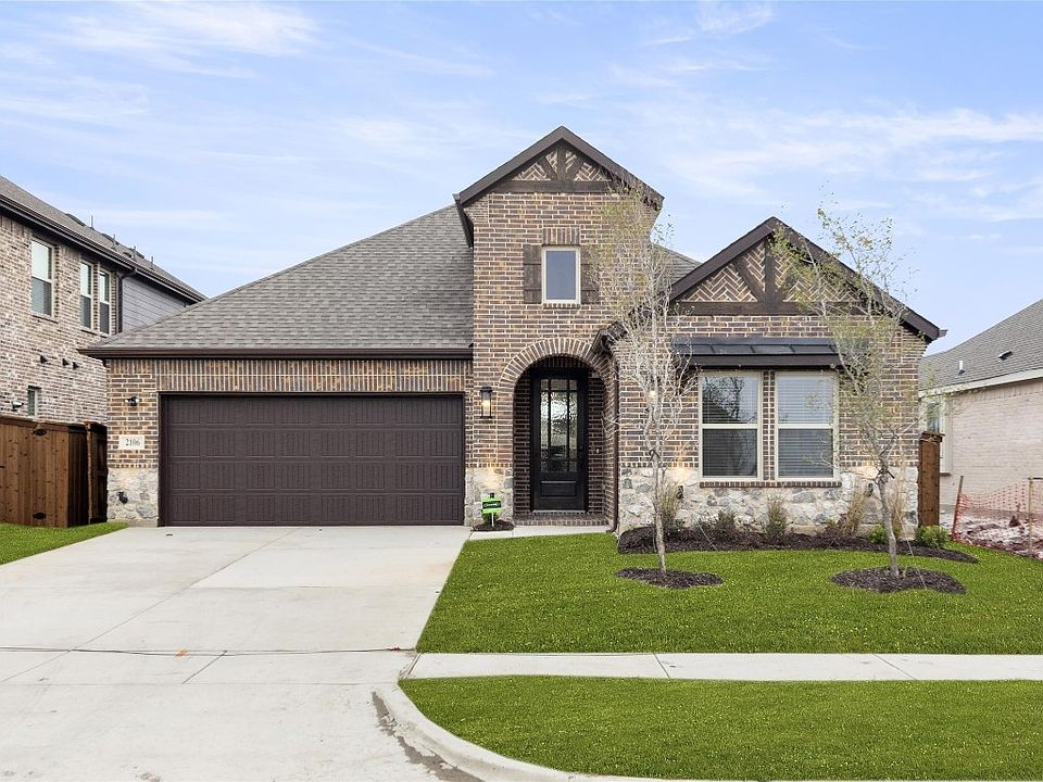 MLS# 20424175 - Built by First Texas Homes - Ready Now! ~ Beautiful elevation with 11’ ceilings throughout!. Homesite is right across the street from the lake and near the walking trails and amenity center. Upgraded kitchen with white cabinets and white quartz countertops, luxury vinyl flooring throughout, upgraded primary bath, and blinds included. ***Some features shown on layout may be optional. Consult with the Sales Counselor for community plan specific features.***