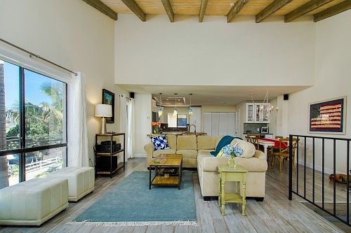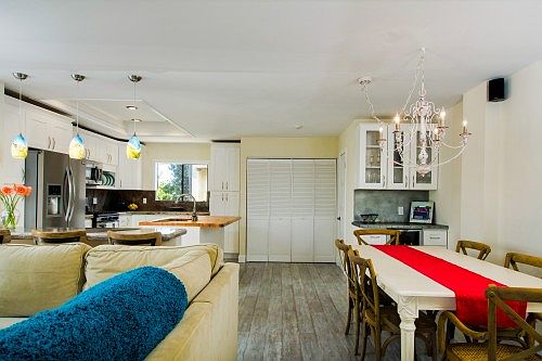 This bright and airy 2 bed 2.5 bath townhome was updated in 2013.Downstairs you will find the master suite. Bathroom features include custom floors, beautiful counters, designer tile, mirrored closets, built in vanity, and great lighting. Step down in the high ceiling bedroom filled with natural light from the large window and sliding glass doors that lead to an intimate patio. A true master retreat!Down the hallway is the 2nd bedroom with mirrored closets with built ins for storage. At the end of the hallway is a full bath with a light marble counter and custom tile and hardware.Head upstairs to the spacious open concept floor plan with vaulted ceilings and natural light pouring in. The living room is equipped with surround sound wiring and a gas fireplace with an area above to mount a TV. Step through sliding glass doors to enjoy the relaxing ocean breezes and sunsets from the west-facing deck. Perfect for BBQs!The fabulous kitchen features recessed lighting, white custom cabinetry, granite counter tops, a gorgeous butcher block island, plenty of storage and stainless steel appliances.Off of the kitchen is a hidden laundry area and a convenient powder room.The dining area is great for dinner parties with its dimming chandelier lighting fixture, sleek dry bar with wine cooler, and open access to the kitchen and living room.An attached 2 car garage offers security and direct access to unit with ample storage space.Convenient to beaches, parks, restaurants, shopping, and freeways.It is currently tenant occupied. Please do not disturb occupants.