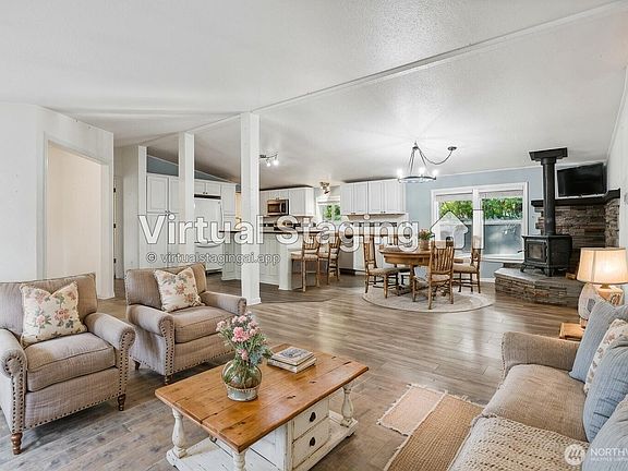 Extra Extra Extra-just like the old news papers this home has Extra everything-Manufactured as 5 bedroom and sits on 5.31 fully fenced + cross fenced acres with a private well and 3 bedroom septic. Extra huge level lawn. Extra gates everywhere. Come cuddle up to the permitted wood stove or in the Hot Tub. Extra new roof 2025. 2 Extra finished rooms on the room list are bedrooms and there is still and Extra Den. 2 car enclosed shop- plumbed and lighted for your air tools. Extra RV parking. Extra out buildings. Extra Huge park in Barn. Productive garden-Privacy-trees. Not in flood plane.
