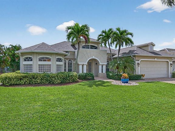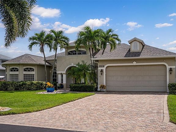 Welcome to 2106 SW 52nd Street, a custom-built Tuscan-inspired retreat located in one of Cape Coral’s most desirable areas — with NO HOA! Enjoy the freedom to live your way without restrictions, all while being just minutes from the MARINA, SHOPS, RESTAURANTS, FREEDOM BOAT CLUB, CAREFREE BOAT CLUB, and local events. This elegant home features 3 BEDROOMS, 2 FULL BATHS, 1 HALF BATH, a POOL BATH, and a FLEX ROOM, offering both style and functionality. Step inside to find SOARING CEILINGS, a spacious GREAT ROOM WITH TRAY CEILING OVERLOOKING THE POOL, and a FORMAL DINING ROOM perfect for gatherings. The GOURMET KITCHEN will impress any chef with WOOD CABINETRY, GRANITE COUNTERTOPS, STAINLESS STEEL APPLIANCES, a WINE COOLER, and ample storage space. CERAMIC TILE FLOORING flows throughout the home, enhancing its timeless appeal. Your PRIMARY OWNER’S SUITE is a true sanctuary, featuring a TRAY CEILING, FRENCH DOORS LEADING TO THE LANAI, and a luxurious ensuite with DUAL VANITIES, a SUNKEN TUB, LARGE WALK-IN SHOWER, and abundant natural light. All bedrooms include WALK-IN CLOSETS for exceptional storage. Step outside and embrace the FLORIDA LIFESTYLE with a RESORT-STYLE POOL featuring a WATERFALL, SEATED LEDGES, and IN-POOL TABLE — perfect for relaxation and entertaining. The OUTDOOR KITCHEN and TROPICAL PRIVATE BACKYARD create an ideal setting for year-round enjoyment. Every detail has been thoughtfully designed — from the MOTORIZED HURRICANE SHUTTERS ON EVERY WINDOW that secure the home like a fortress, to the TILE ROOF, MANICURED LANDSCAPING, and PALM-LINED FRONT YARD offering striking curb appeal. With NO HOA, BOATING CONVENIENCE JUST MINUTES AWAY, and 2,552 SQUARE FEET of beautifully crafted living space, this home captures the essence of LUXURY AND FREEDOM. Experience ELEGANCE, COMFORT, and the BEST OF CAPE CORAL LIVING — where SOPHISTICATION MEETS COASTAL INDEPENDENCE.