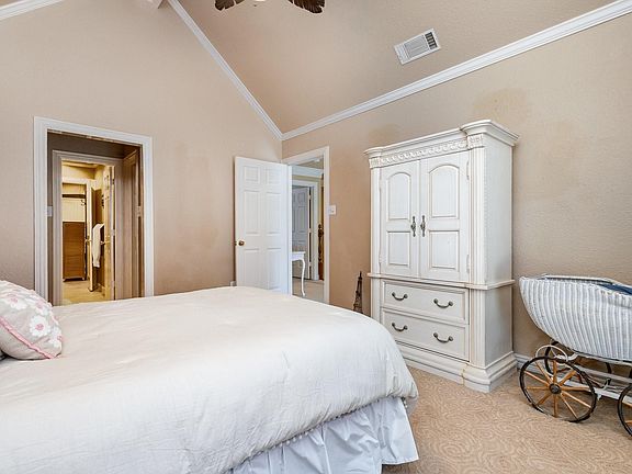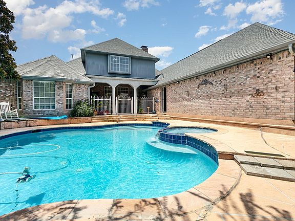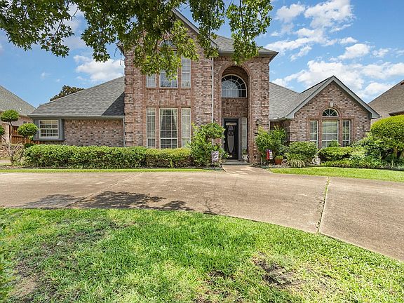 Located in a highly desirable neighborhood where homes rarely come on the market, Club Creek offers a serene, established setting with convenient access to I-30 and George Bush Turnpike (GB190), top-rated schools, shopping, dining, and recreational options. This custom home sits on a generous lot with exquisite curb appeal, featuring lush landscaping, mature trees, and a circular driveway leading to an arched covered entry that makes a grand first impression. Step inside to discover an inviting open-concept layout. the formal family room features a cozy fireplace framed by large windows that flood the space with natural light, while the elegant crown moldings and ceiling details throughout add architectural refinement. The primary suite, conveniently located on the first floor, is a true retreat; adorned with bay windows, rich wood flooring, and ample space for a sitting area, it opens into a spa-inspired ensuite featuring a seamless glass shower with multi-function jets, dual vanities, and elegant finishes. A second downstairs bedroom and full bath provide comfort and convenience for guests or family members seeking privacy. At the heart of the home lies the chef’s kitchen, designed to delight any culinary enthusiast. Boasting granite countertops, stainless steel appliances, abundant cabinetry, and a center island for meal prep or casual gatherings, the kitchen connects seamlessly to a charming breakfast room overlooking the backyard oasis. Adjacent to this space is a richly appointed study-library with custom built-ins and classic millwork, ideal for remote work or quiet reading. Step outside to your private backyard retreat, where relaxation and entertainment come together. Enjoy the sparkling resurfaced pool and spa, surrounded by lush landscaping and a covered patio—ideal for outdoor dining or weekend gatherings. Additional highlights include an upgraded HVAC system, new fencing, and an enhanced sprinkler system, ensuring both comfort and peace of mind.