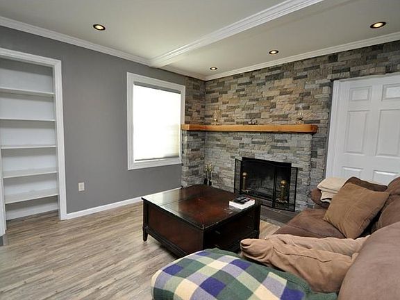 You'll love this striking and updated ranch style home just 20 minutes to the magnificent City of Pittsburgh. One of a kind - remarkable home with amenities galore. First floor living. Brand new roof. Many delightful features included a gourmet kitchen with under-lighting, granite counter-tops, stainless appliances and tiled back-splash. Tiled entry leads to living room with built-in bookshelves. Living room has custom stone wall with wood mantle, recessed lighting and wood burning fireplace. The rest of the main floor includes 2 updated full baths, master bedroom with dramatic vaulted knotty pine ceilings/walls and sliding barn door into your master bath with glass doors and tiled shower. High end vinyl plank flooring throughout. Finished basement has plenty of room and includes a 3rd bedroom/den/workout area and a half bath. Yard behind house included.
