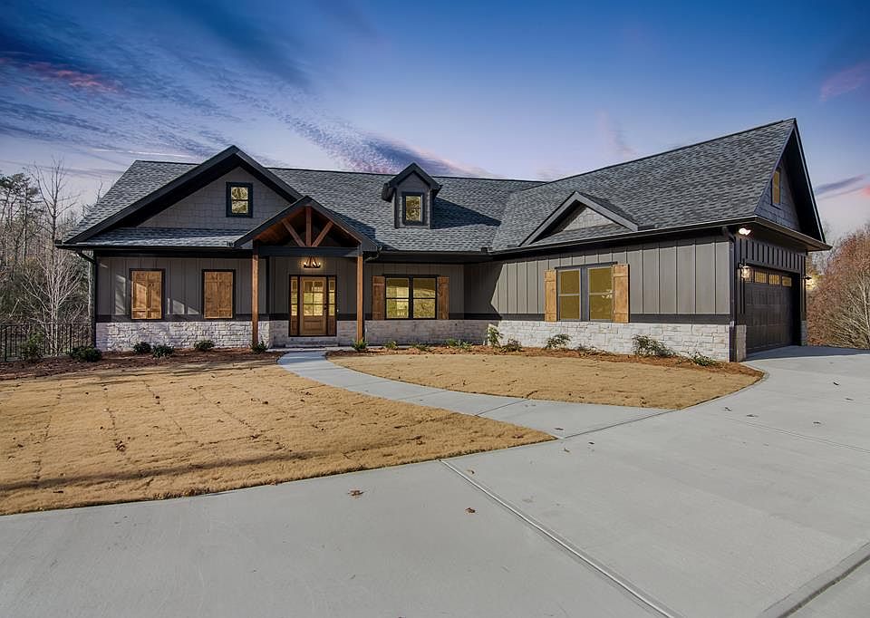 Beautiful New Construction on Over 2 Acres - Discover your Dream Home in this stunning new construction nestled on over 2 acres of serene land with NO HOA. This thoughtfully designed one-level home boasts a full unfinished basement, providing endless possibilities for customization. 3 Bedrooms with 2 Full Baths, Spacious master suite with private access to the back deck, an oversized tile shower, and a double vanity. Two additional bedrooms, one featuring a cozy nook perfect for a desk or study area. Open-Concept Living with the great room with a charming stone fireplace—ideal for gatherings. A bright and airy kitchen with a large island, pantry, and adjacent dining area framed by glass slider doors. For Convenience and Storage the Main-level 2-car garage has a storage room. The full unfinished basement is stubbed for a bath and kitchen, offering potential for an in-law suite or entertainment space. Includes a 3rd car garage and overlooks a backyard perfect for kids and pets. The exterior is as impressive as the interior, with professional landscaping, a concrete driveway, and a peaceful setting just 3 miles from shopping and Hwy 515. Located in the sought-after Clear Creek School district, this home offers both convenience and tranquility. Don't miss the opportunity to make this your forever home!