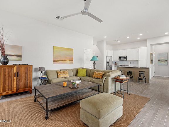 One owner well cared for home w/ beautiful low maintenance back yard landscape including pavers & synthetic grass. This is one of the BEST Lots in Hastings Farms- lot 39 was picked early for its expansive open feel and view fencing to the park. The home boasts a great room floorplan w/ large sliding glass doors to a covered patio, Shaker white cabinets, a kitchen island, stainless appliances including gas cooking, designer backsplash, walk-in pantry, & Granite counters. Plank tile flooring. Split floor plan, sizeable primary closet, & window treatments throughout make this home ready to move in. It has 17 parks, soccer fields, volleyball courts, walking trails, playgrounds, community activities, and more! Very close to Queen Creek Marketplace with abundant dining & shopping, Pecan Lakes..