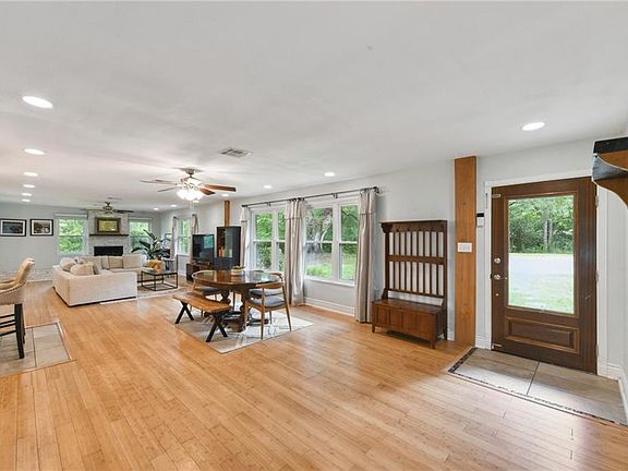 Cozy, brick ranch nestled on 4.67 acres of land leading to the Ponchitolawa Creek. This home is tucked away and surrounded by gorgeous oaks and natural landscaping. The interior boasts 3 beds, 2 baths and an open floor plan. Kitchen is updated with granite countertops and high-end cabinetry. The living space is great for entertaining. Bonus room could be office, playroom or formal dining. Tons of windows and natural light throughout. No carpet. Spacious bedrooms. Covered back patio area, 900 sf metal workshop and 550 sf lean to for storage. Plenty space to park your boats and RV's. Location is right off of I-12 for commuting and shopping. Low assumable flood policy. Relax and enjoy the slow summer months underneath the oaks! Come explore this majestic home and see for yourself! Call today for your private showing!