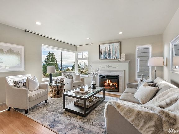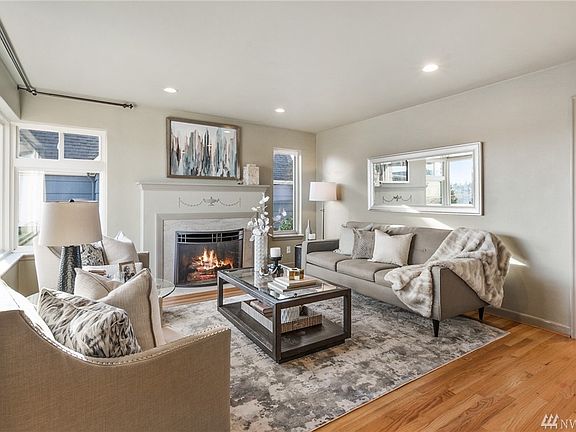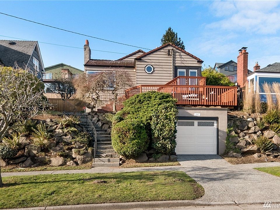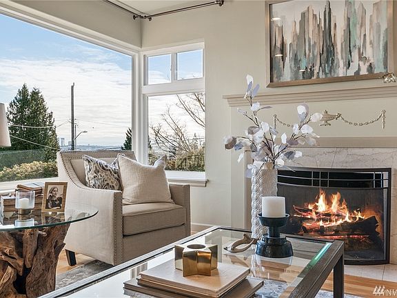 Sparkling Cityscape & Elliot Bay views from this move-in ready, sophisticated charmer. Gracious, light-filled living rm w/gorgeous fplc. Updated kitchen opens to lovely dining rm as French doors flow to large view deck for indoor/outdoor lifestyle. Crisp new main floor bath. Fabulous lower floor remodel boasts perfect space for movie night & Monopoly, while custom built-in desk/shelving makes work/learn from home a pleasure. Bonus - Ella Bailey Park nearby when you need to run off some steam!