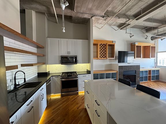Located in the iconic Western Auto building, this unit features beautiful hardwood floors, an amazing view, newly renovated kitchen with quartz countertops, newly renovated bathroom with a dual vanity, tall ceilings, in-unit washing/drying machines, fireplace, and plenty of storage! This rental boasts a prime location with easy access to the Streetcar and everything the Crossroads has to offer! In addition, enjoy access to the complex's newly built dog park! Google Fiber installed in unit (subject to subscription). Other building amenities also include a 24/7 fitness center, communal veggie/spices garden, a gated parking lot with two assigned spots, and a receptionist to handle packages.