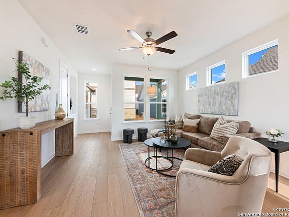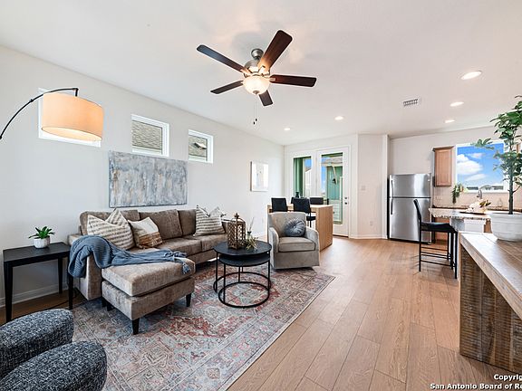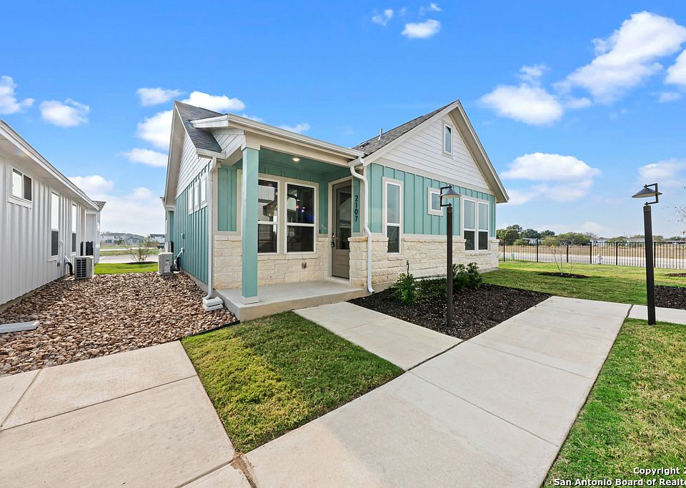 Brand-new, fully furnished 2 bed/1 bath cottage in Solms Landing-move-in ready and STR-approved! This 881 sq ft home comes complete with Living Spaces furniture, washer, dryer, and refrigerator. Seller offering $6,000 toward closing costs with a 30-day close. Stylish stone + Hardie Plank exterior with no back neighbors and only one side neighbor. Ideal for investors, snowbirds, or buyers seeking low-maintenance living. Prime location across from Creekside Town Center-near shopping, dining, the new pickleball venue, upcoming Sprouts, future Topgolf, and more planned entertainment venues and restaurants. Community amenities include pickleball court, covered pavilion, and assigned parking (1 covered + 1 uncovered). Interior features luxury vinyl plank flooring. Live in it. Rent it out. Or do both!