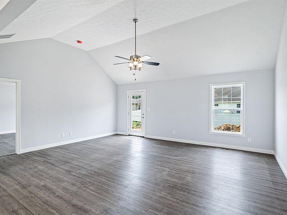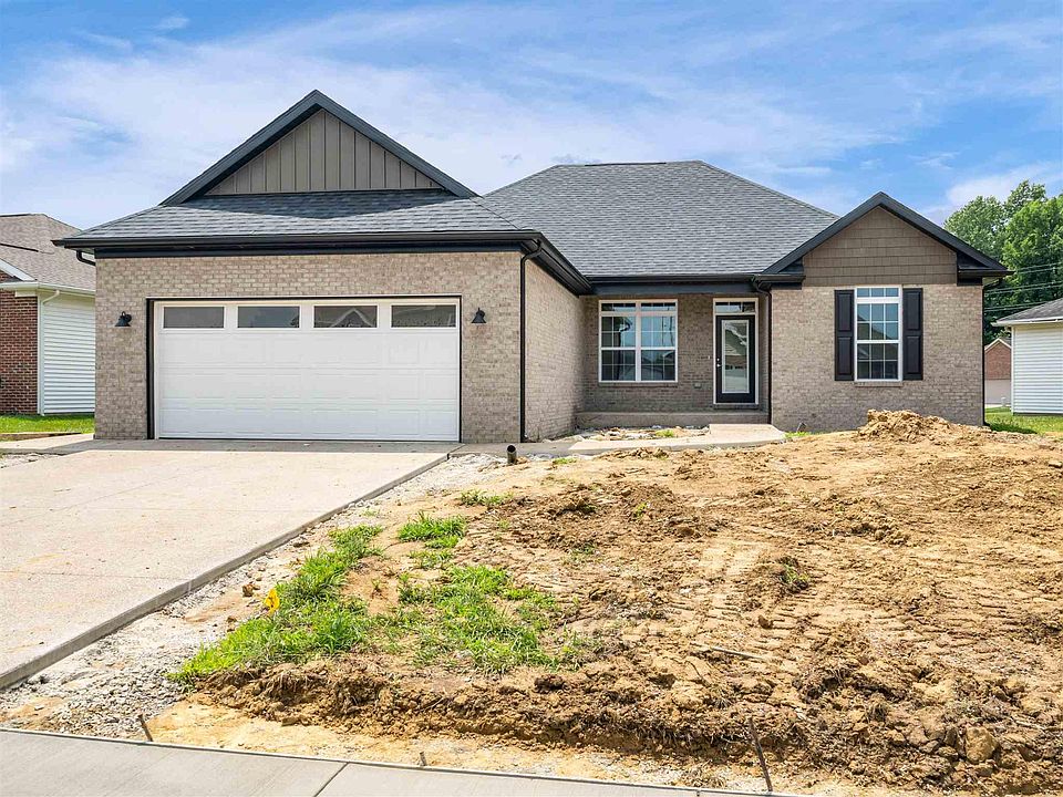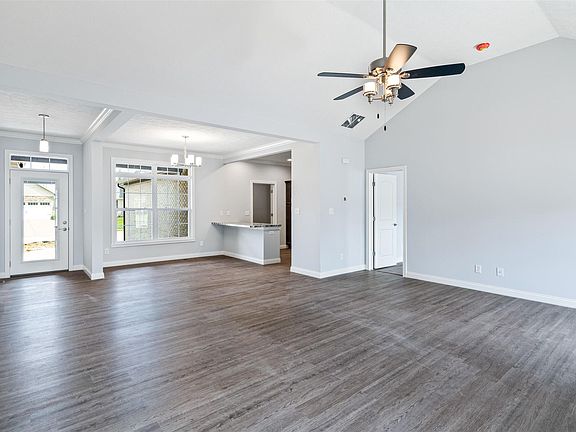 New Construction just finished! Ranch Home in Ellington Ridge with Open Split-Bedroom Floor Plan, 1659 sqft, 3 Bedrooms, 2 Full Baths, Eat-in Kitchen, Great Room, Laundry Room, and 2.5 Car Garage. Great Room has cathedral ceiling, open dining area, kitchen with quality cabinets, stainless steel appliances, and breakfast bar. Owner's Suite has trey ceiling and full bath with double sink vanity, large standup shower, walk-in closet. Crown molding and ceiling light fan fixtures throughout. Exposed aggregate driveway and patio in back, covered front porch. Located on cul-de-sac. Another quality built home by Abney Construction!