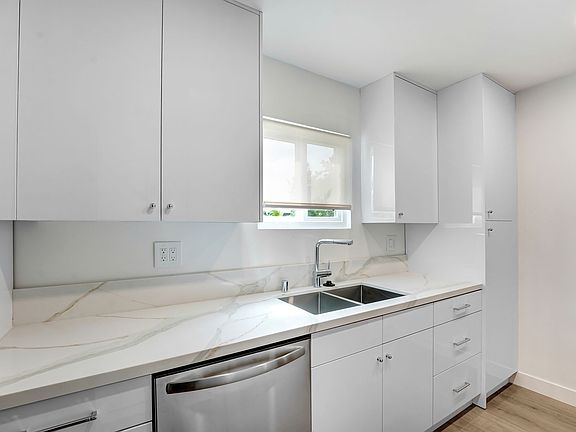 This bright and thoughtfully designed lower-level 2-bedroom, 2-bath apartment offers a functional layout and a spacious private outdoor patio perfect for relaxing or entertaining. Recently fully renovated, the home features sleek flat-panel European-style cabinetry, quartz countertops, new appliances, custom white oak shelving, and high-end plumbing fixtures, all curated with a designer's touch.