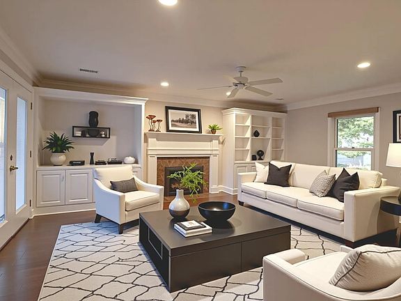 Gas log fireplaceSide-loading double garageDedicated laundry roomThree generously sized bedroomsFormal dining roomPrivacy-fenced backyardBright and airy sunroom