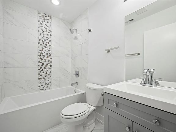 Each bathroom delivers a spa-like retreat, highlighted by marble-style tilework, a beautiful accent wall, and polished chrome fixtures that create a timeless, refined look. The convenience of an in-unit washer and dryer ensures effortless living.