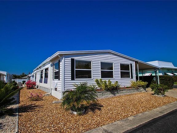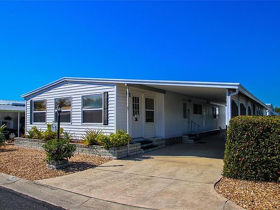 Come see this cozy, LAND OWNED, 2 bedroom 2 bath double wide manufactured home located along gorgeous Palma Sola Bay. This move in ready FURNISHED corner unit has been impeccably well maintained and features beautifully updated kitchen and bathrooms, hurricane shutters, large walk in closets, an outdoor utility shed, as well as a spacious Florida room which can be converted to a den or 3rd bedroom. Roof over completed 2016 and water heater 2018. Just steps to the heated community pool, NOT IN FLOOD ZONE, and a short walk to the bay places this unit in the ideal location within the community. Low Monthly fee of $180 includes water/sewer/trash, cable, pool, internet, shuffleboard, clubhouse and fishing pier.