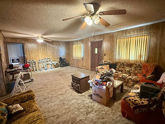 Great location just south of town!! 3 bedrooms and 2 bathrooms sitting on 1 acre. The kitchen has newer countertops and tile and one bathroom has an updated shower. Spacious with lots of potential. Two storage sheds and lots of room!!
