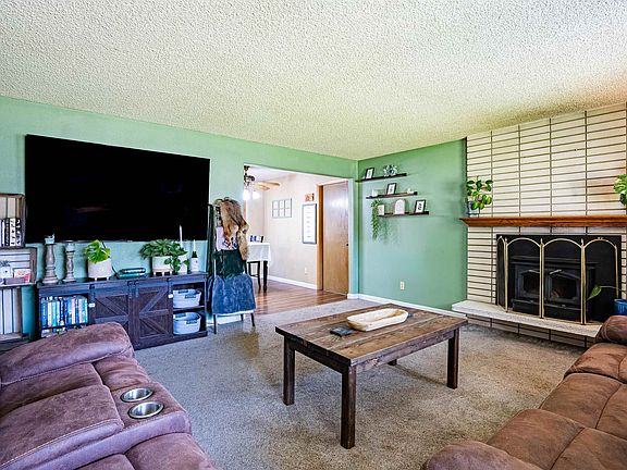 Welcome to this spacious 4 bedroom, 2.5 bathroom Valley Rancher situated on a generous 1/3 acre lot. This home offers plenty of room for comfortable living and entertaining, Kitchen features a gas range and stainless steel appliances. Central a/c and 2 fireplaces provide year round comfort. Outside you will find a oversized 2 car garage, Rv parking and ample space to build your dream shop. The covered patio, newly sodded backyard and sprinkler system make outdoor living a breeze. No HOA, community pool, located close to shopping, dining more. Perfect blend of convenience, comfort and freedom!