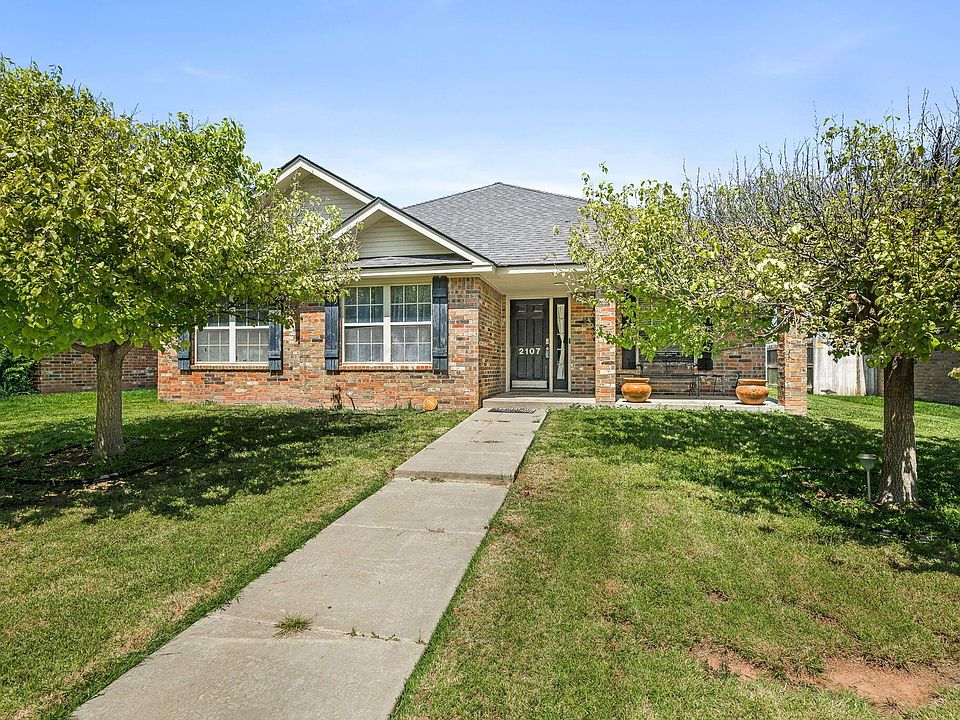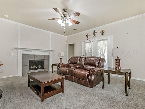 Welcome to this charming 3-bedroom, 2-bath home in the desirable Tradewinds neighborhood! A welcoming front porch invites you into a living room with brand new carpet and a cozy electric fireplace. The isolated owner's suite offers a private retreat. This all-electric home is packed with recent updates, giving you total peace of mind: NEW HVAC, NEW hot water heater, NEW dishwasher, and NEW disposal. Enjoy the convenience of sprinklers in the front and back, a storage building for your extras, and an oversized 2-car garage with a workspace. The refrigerator conveys! With modern touches like automatic interior lights, this home is the complete package. Schedule your showing today!