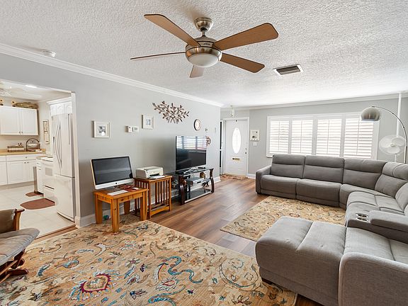 Desirable Edgewood Model, Quiet Interior Lot, American Home Shield Warranty on all Appliances, A/C, Plumbing & Electrical Systems, Transfers to Buyers at Closing for One Year. Newer Kitchen Cabinets, Newer Washer/Dryer, GE Electric Panel, Paddle Fans, Newer Toilets, Some Plantation Shutters, Tile Roof 2007, Flat Roof 10 years old, Laundry Sink in Garage, Leaving Refrigerator in Garage, Removed Popcorn Ceilings in 3 Rooms, Crown Molding. Screened Back Patio & Doggie Door Installed. Enjoy Active 55+ Community, Club House, Heated/Cooled Pool, Spa, 9 Hole Golf, Exercise, Computer, Billiards, Card Room and Entertainment Center. Basic Cable TV Included in Low HOA Fees. Pets Welcome.