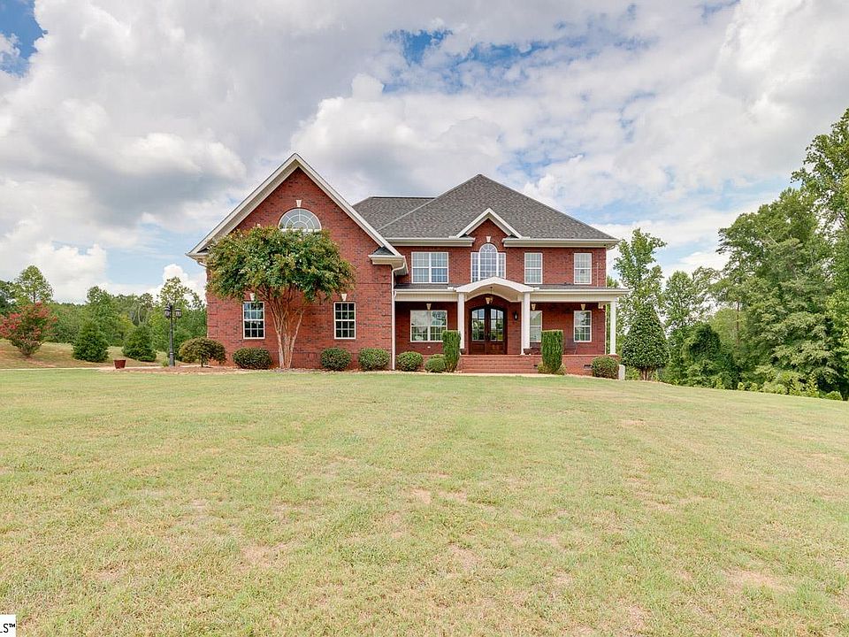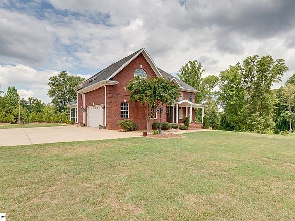 Situated on nearly four acres in a prime location of Easley, SC is this beautiful six bedroom three and a half bath custom built brick home. Entering through the impressive mahogany and glass arched front doors there is a two story foyer and great room that features a stacked stone gas log fireplace that is framed by double French doors with transoms and large arched windows that allow for an abundance of natural light. Arched large doorways lead into the warm and inviting eat-in kitchen that has a unique stacked stone island, a stacked stone wall with double ovens, custom built oak cabinets, granite countertops, a large pantry, coffered ceilings, and stainless appliances. Just off the kitchen is a large screened in back porch that opens onto a concrete patio, perfect for entertaining or relaxing. The dining room has attractive wainscoting and a tray ceiling. The spacious master bedroom is on the main level and has a lighted tray ceiling. The master bath features a jetted garden tub, dual sinks, a large walk in closet, a water closet, and a roomy marble shower with glass doors. The main level of this home features beautiful hardwood flooring and elaborate detailed custom moldings that convey a timeless and classic look of fine craftsmanship. The two car garage has an epoxy finished floor and is generously sized. The laundry room is conveniently located just inside the garage entrance and can double as a mud room with its utility sink, storage cabinets, and space for an extra refrigerator. Five bedrooms and a bonus room are located on the second floor of this home. Two large carpeted bedrooms and a full bath are located on one end of the hardwood catwalk, and three bedrooms (one with hardwood flooring), one full bath, and the huge bonus room with a high ceiling, hardwood flooring and a large arched window are located at the other end. Ample storage is made available in a bonus walk-in storage space on the second floor, and there is also a pull down door for access to attic storage. High energy efficiency is provided by the spray foam insulation that is in the attic, exterior walls, and in the floor joists of the crawl space, and there is also a tankless gas water heater. The brick exterior, vinyl windows, architectural shingles, and quality workmanship help to ensure low maintenance. Although it has the feeling of being a private oasis, this home is conveniently located to Highway 123 and I-85, and is only a 15 minute drive to the award winning downtown of Greenville, SC which features many options for fine dining and cultural, entertainment, and athletic events. An abundance of hiking trails, lakes, and mountains are nearby for outdoor activities. Easley, SC is centrally located between Charlotte, NC and Atlanta, GA, and is only a 3.5 hour drive to Charleston, SC. This one of a kind premium built high quality gorgeous home is a must see. Schedule your showing today!