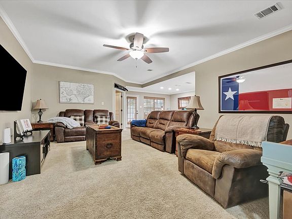 Beautifully Maintained Home on Tanglewood Circle! Welcome to this charming 3-bedroom, 2-bathroom home offering 1,523 sq. ft. of comfortable living space. Built in 2009, this residence impresses with its inviting curb appeal — featuring a manicured lawn, tidy landscaping, and classic brick exterior with decorative touches. Inside, you'll find a bright and open layout with crown molding, neutral tones, and abundant natural light. The spacious living room provides a warm and welcoming space for relaxing or entertaining. The kitchen is a standout, offering granite countertops, stainless steel appliances, plenty of cabinetry, and a breakfast bar that opens to the dining area overlooking the backyard. The primary suite boasts his-and-her closets and a luxurious en suite bath with double vanities, a soaking tub, and a walk-in shower. Step outside to enjoy a covered patio and a large, fully fenced backyard — ideal for gatherings, play, or quiet evenings. Don't miss out, call today!