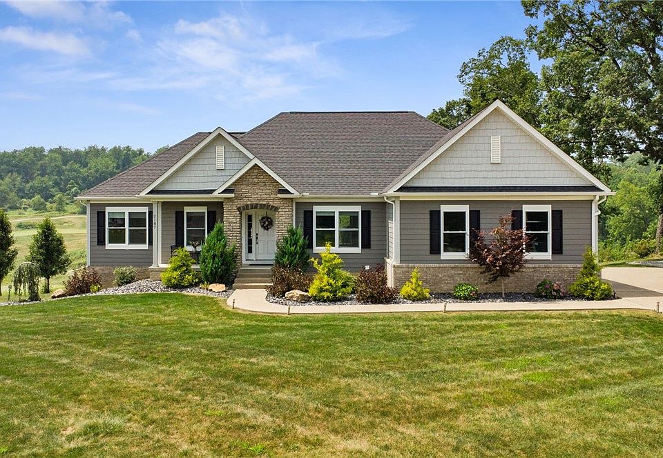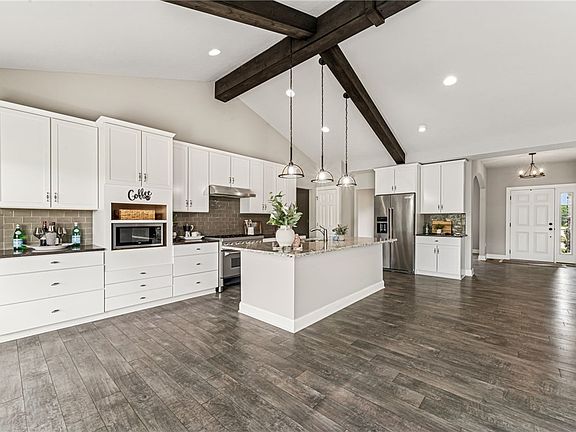 Welcome to one of the most coveted homesites in the Totteridge Golf Community! Perfectly positioned at the end of a quiet cul-de-sac, this beautiful ranch home offers breathtaking views overlooking the 5th hole -a golfer's dream! This nearly new home features an open-concept w/ vaulted ceilings, wood beams, and striking stone fireplace that anchors the spacious living area. Oversized patio windows frame the vistas and lead to a Trex deck for spectating or relaxing. Chef’s kitchen boasts top of line appliances, ample cabinetry, quartz countertops, sparkling backsplash, and huge center island. The walkout lower level adds 2,000 sq. ft. of space -flooded with light and featuring a 2nd patio to enjoy the views. This expansive space, with gas fireplace and 3rd full bath, offers endless possibilities -game room, gym, media space, or guest suite. An additional room provides flexibility for a 4th bedroom or den. Why build when you can move right into this turnkey home that has it all?