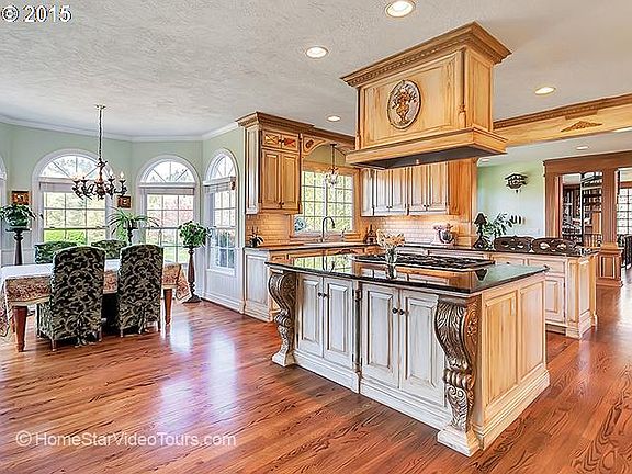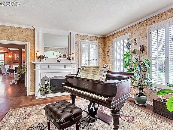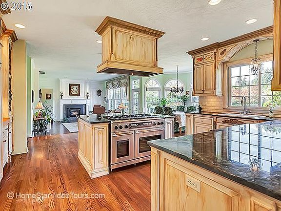 The grounds include a sport court, a baseball diamond and English gardens. Remodeled chef's kitchen with high end appliances, custom hand painted cabinetry and hardwood floors throughout the main level. Large recent three level addition includes a library with hand crafted mahogany and cherry wood built-ins, efficient gas fireplace, coffered wood ceiling. Option to attend West Linn High School, access to Lake Oswego Schools.