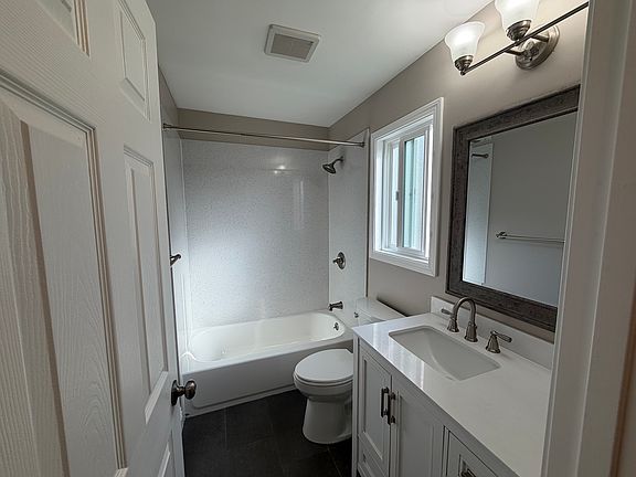 Modern tile flooringDownstairs half bathQuartz countertopsNew appliancesAmple closet space