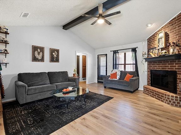 Welcome to this charming 3-bedroom, 2-bath home that combines cozy elegance with thoughtful details. Step into a warm living room featuring a fireplace that's perfect for gathering. The open layout flows into a quaint dining nook with a built-in bench, adding a touch of character to the space. The kitchen will catch your eye with the beautifully painted cabinetry. And the vinyl flooring adds a modern touch throughout. Step outside to a covered patio overlooking a beautifully landscaped yardideal for entertaining, gardening, or just enjoying a peaceful morning coffee. This adorable home has everything you need!