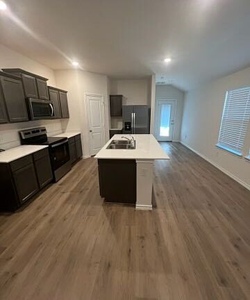 Discover this beautifully designed 3-bedroom, 2-bathroom home featuring an inviting open floor plan and modern finishes throughout. The kitchen includes a spacious island, quartz countertops, and LED lighting, perfect for everyday living and entertaining. Additional highlights include a full sprinkler system and a professionally engineered post-tension foundation for lasting quality.