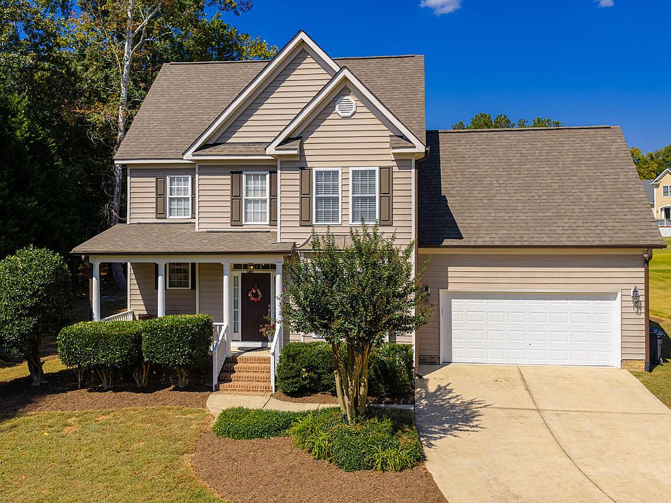 Video walk-through -Welcome home to this fantastic 2-story gem in the popular Brighton Knoll community of East Raleigh! From the inviting rocking chair front porch to the spacious, level backyard (.70 Acres), this home is designed for comfort, connection, and everyday enjoyment. Inside, a soaring 2-story foyer sets the tone, leading to a beautiful formal dining room with hardwood floors, tray ceiling, and elegant trim—perfect for hosting holidays and special gatherings. The cozy family room with fireplace flows seamlessly into the updated kitchen, where granite countertops, a central island, and stainless steel appliances make cooking and entertaining a joy. Upstairs, the serene primary suite offers a relaxing retreat with backyard views, a tray ceiling, and a spa-like bath with garden tub and separate shower. Two additional bedrooms and a large bonus room give you all the flexibility you need for work, play, or guests. Step outside to the spacious deck and enjoy grilling, relaxing, or simply soaking in the peaceful setting with extra breathing room from neighbors. Best of all, there are no HOA dues, no city taxes, and no water or sewer bills—saving you thousands each year! New roof 2019 new HVAC's 2017 and 2021. Plus newer Gutters, Insulated Garage door and more! Refrigerator and New high-end Washer and Dryer Included!! Just minutes from new shopping, dining, and everything East Raleigh has to offer, this home perfectly balances tranquility and convenience. Don't miss your chance to make it yours!