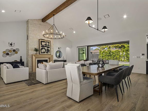 Brand new home in a highly sought-after neighborhood. This residence showcases high-end finishes, excellent landscaping, and a full smart-home system with speakers throughout the interior and exterior. The open layout highlights a custom bar complete with beverage drawers, a second dishwasher, and an ice maker. The mud room includes a built-in dog water faucet and drain, while every bathroom features power behind the mirrors for added convenience. Additional upgrades include air conditioning in the garage and a private outdoor shower. The covered patio and beautifully designed yard complete this thoughtfully crafted home, offering the perfect blend of modern luxury and everyday comfort.