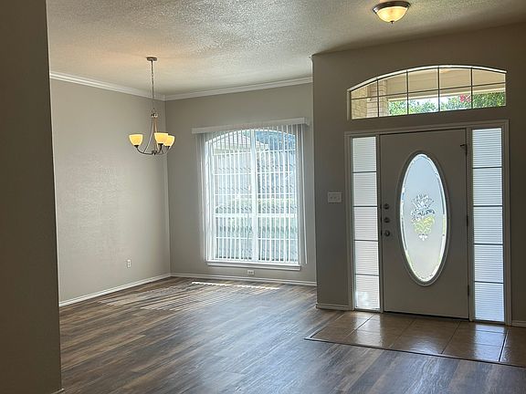 Beautiful, well maintained home in Country Trails neighborhood. This home features 3 bedrooms, 2 baths, 2 living areas, and 2 dining areas. Many amenities include a GDO, a wood burning fireplace, window coverings throughout, ceiling fans, and stainless steel appliances with built-in microwave. This desirable split floor plan boasts a spacious master bedroom and lovely master bath where you will find a separate shower, tub, dual vanities, and walk-in closet. Enjoy summer evenings in the privacy fenced well-maintained yard with a large shade tree in the back, and a covered patio. Move-in ready.