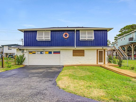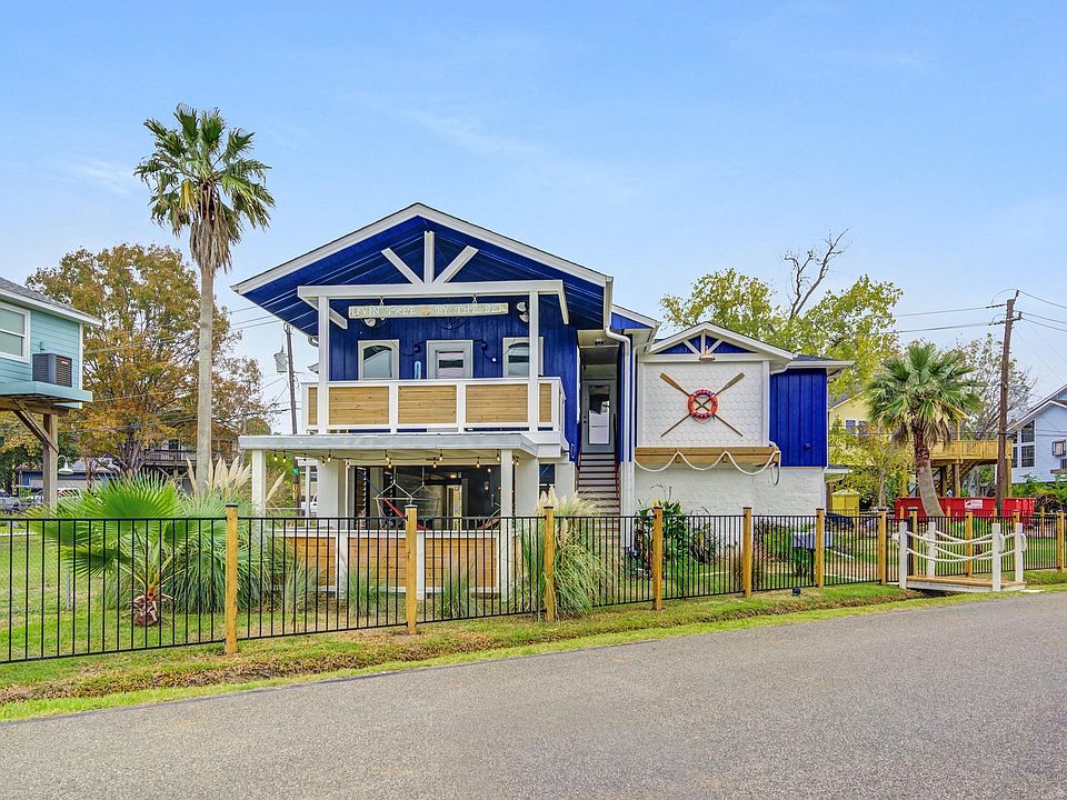 Vacation year-round in this beautifully updated bungalow with serene water views. Fully furnished and move-in ready (excluding personal items), this charming home is currently operating as a short-term rental. Nestled in a peaceful neighborhood, residents enjoy exclusive amenities including a boat ramp, fishing pier, and park. Elevated on stilts, the 2-bedroom, 2-bath layout offers both comfort and character, just minutes from Kemah, NASA, and a variety of restaurants. Upstairs, the home has been renovated with a vaulted ceiling in the living room, a balcony with water views, new flooring, bathrooms and laundry area. Downstairs, enhancements include a full exterior repaint, a bar with running water, a cozy patio space and a fenced yard. The moment you arrive; you’ll be captivated by the charm and warmth of this property. Whether you're looking for a personal retreat or a profitable investment, this home offers the perfect blend of relaxation and opportunity. Update list attached.