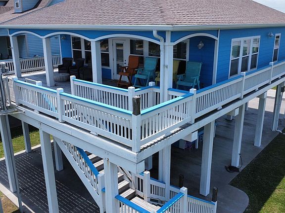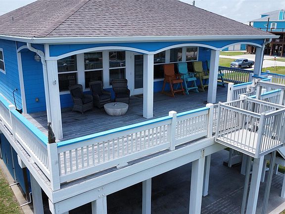 This third row, with second row view because of County buyouts on the front row is a three bedroom, two bath, 1,496 ft.² with cargo lift to make bringing up luggage or groceries a breeze. The spacious, partially covered deck is perfect for enjoying the view of the water with a cup of coffee in the morning or an afternoon beverage. The house is currently set up to sleep nine people in beds and the kitchen and dining room have a combined seating capacity of 14. You will have plenty of room to entertain upstairs as well as downstairs. You are just steps away from the beach where you will enjoy all of the fun in the sun to include hunting for sharks, teeth and seashells. You will also find some of the best surf fishing on the upper Texas coast. This home is located in the heart of Crystal Beach and close to all shopping and restaurants within just a few miles.
