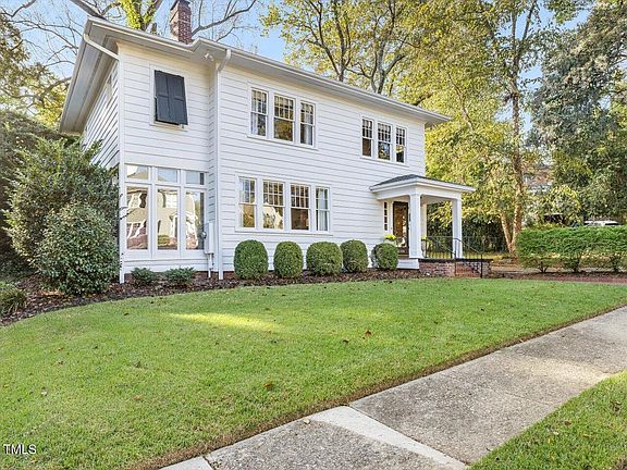Charming, light-filled beauty! This home offers the best of old and new. Move-in ready with gracious entry, living room with fireplace, built-ins, custom remote-controlled blinds. Separate dining room, cozy sunroom. Four bedrooms, two full baths, two half baths. Beautiful new hardwood floors on first floor, refinished hardwoods on second level, new dishwasher, washer, dryer. Private patio. Room to expand if you need more space. Detached garage. Just steps to Hayes Barton and Five Points -- coffee shops, Nofo, restaurants, shopping, The Rialto, exercise studios and so much more!
