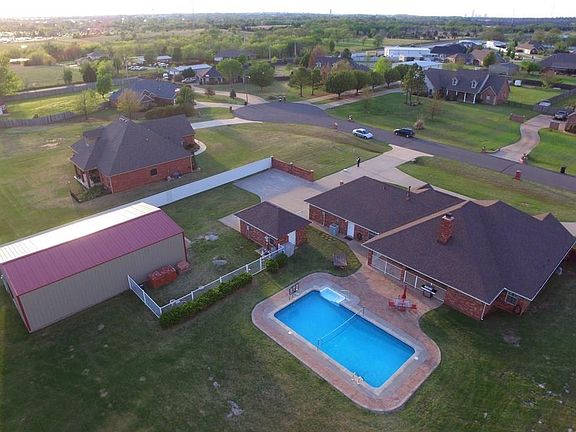 Located in the coveted Lost Creek addition. If you like large lots, privacy, loads of storage, shop buildings, convenience, and are looking for an exceptionally well-maintained home, look no further. Picture yourself enjoying a nice, cold beverage by the in-ground pool with sports package. Surrounding the 1.01 acres is a weather resistant, metal privacy fence. On this cul-de-sac lot is a 30x50 shop building with overhead door and power along with an additional single-car garage for extra storage or a safe place for that classic car you just can't part with. The circle drive is convenient for gatherings of all sorts. This home is equipped with a large safe room with storage for essentials and priceless items as well as a convenient central vacuum system. Tons of finishes have been updated including showers, granite countertops, new ceiling fans, faucets & fixtures, etc. There are a lot of updates and conveniences that make this house special. Schedule a showing today.