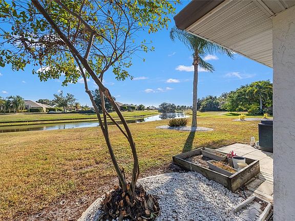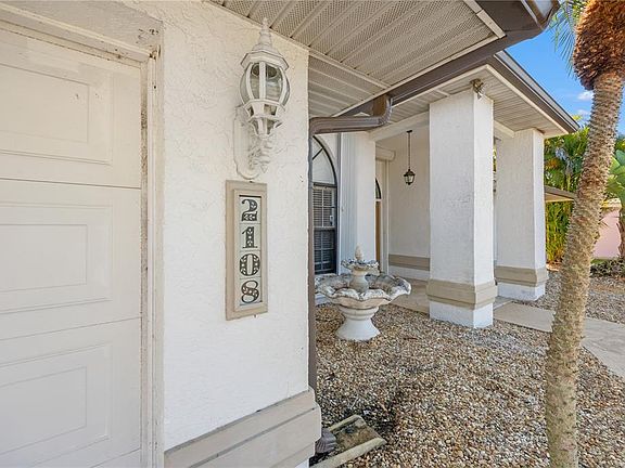 Exceptional value in Deep Creek: A beautifully updated, lakefront pool home situated in an established neighborhood with desirable Eastern rear exposure. This residence maximizes the Florida indoor-outdoor lifestyle, featuring vaulted ceilings and sliding glass doors that open to the expansive, screened lanai and pool deck, offering panoramic, long-lake views. The owner’s suite is well-appointed with dual solid surface vanities and a walk-in shower & jetted soaking tub. Enjoy enhanced security and insurance benefits with the installed accordion hurricane shutters. The home is equipped with a gas water heater and gas stove for utility savings. Key updates include a newer roof, A/C, new pool filter, freshened landscaping and updated flooring. Located in a non-flood zone, this property is conveniently situated just 10 minutes from downtown Punta Gorda and all that it offers with shopping, parks, & eateries.