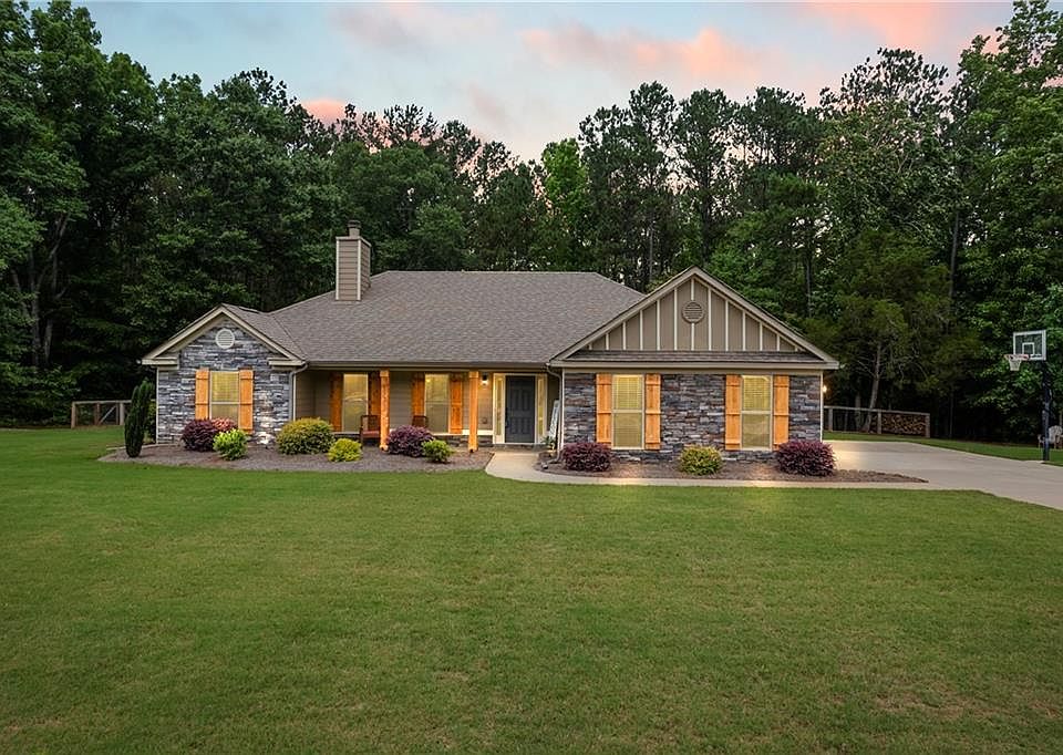 Located just 15 minutes from downtown Monroe and Bethlehem, and about 20 minutes from Athens, this beautifully maintained 4-bedroom, 3-bath ranch home offers peaceful country living with quick access to shopping, dining, and entertainment - and no HOA! Welcome to this beautifully maintained, one-owner ranch home nestled on 2 acres. With plenty of room to entertain or unwind, this home offers the perfect blend of comfort, style, and convenience. The charming exterior features stacked stone accents, cedar shutters and columns, and a freshly painted finish. Enjoy your morning coffee on the welcoming front porch or relax on the extended covered back patio with a stained tongue-and-groove ceiling, overlooking the fenced backyard and firepit area, perfect for cozy evenings outdoors. Inside, the spacious living room features a stunning stone fireplace flanked by double built-in bookcases. The kitchen boasts granite countertops, stained cabinetry, tiled backsplash, stainless steel appliances, and a central island for easy prep and gathering. Updated LVP flooring flows through the entry, kitchen, and large dining room which is big enough to comfortably fit a 10' table. The oversized owner’s suite is a true retreat, with a double tray ceiling and a spa-like en suite bathroom complete with dual vanities, a corner soaking tub, a tiled shower, updated tile flooring, and a spacious walk-in closet. The home offers a split bedroom place with two generous secondary bedrooms with a full bath featuring a large granite vanity and tiled floor off. The 4th bedroom sits privately with access to its own full bathroom. A shiplap-accented laundry room adds charm and functionality. This move-in ready home offers space, privacy, and a quiet rural setting without sacrificing convenience.