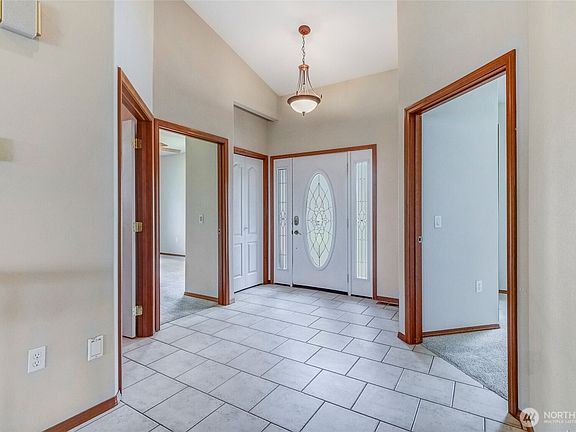 Beautiful 4-bedroom, 3-bath stucco home with 3,038 sq ft of spacious, well-designed living. Features include cathedral ceilings in the foyer, 9' ceilings on both levels, a den/office, living and family rooms, and an oversized garage. Enjoy custom cabinetry, granite countertops throughout, and accent lighting in the living room, kitchen, and bathrooms. Two cozy gas fireplaces add warmth and charm. The vinyl-fenced backyard includes UGS, a large storage room, and a deck/patio with glass and vinyl panels plus quick-fit gas stubs for grilling. Relax and soak in breathtaking views of the lake, mountains, and stunning sunsets! Montlake park out your back door for all your summertime lake fun! Ask your agent for home feature list.