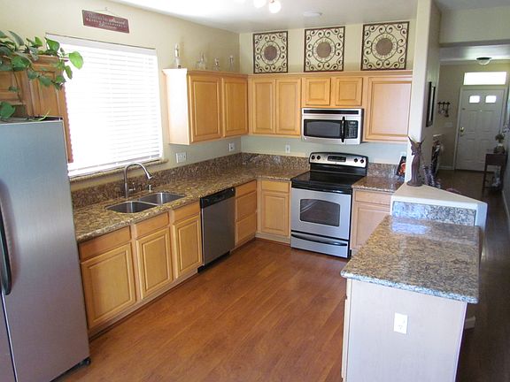 Great family home with many recent improvements made! One of the best school districts in Reno. Large private balcony off master bedroom. Wonderful views. Very close to a jogging trail, the Northwest Library, and many parks. Inside amenities include: New paint through living room, kitchen, and hallways. Newly installed laminate floors and granite counter tops downstairs. Brand new carpet upstairs. Master and guest bathrooms have upgraded tiled sinks and showers. Stainless steel appliances have been added to kitchen including new stainless steel sink and faucet. Back yard has mature vegetation, covered patio, and bonus patio on the side of the home.