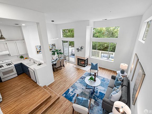 Tucked away on a peaceful cul-de-sac, this 3BD/2.5BA + office split-level home has been beautifully refreshed with new interior paint, new flooring throughout, and new front deck stairs, offering a move-in-ready experience with timeless appeal. The main living area impresses with soaring ceilings and abundant natural light, creating a spacious and inviting atmosphere. The office on the main level provides the perfect work-from-home setup, complemented by a convenient half bath. The kitchen, rich with cabinet space, opens seamlessly to the dining and living rooms, ideal for entertaining and everyday living. Glass sliding doors lead to a large terrace overlooking Ward Creek and lush trees, creating a tranquil connection to nature. Upstairs, all bedrooms are thoughtfully arranged, including a primary suite with a walk-in closet, dual vanities, and a separate toilet closet. Two spacious guest bedrooms enjoy large windows and serene forest-like views, while a guest bath with shower over tub completes the level. A two-car side-by-side garage with laundry, ample storage throughout, and the comfort of a single-family home in a planned unit development. A perfect blend of comfort, style, and hillside serenity awaits.