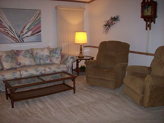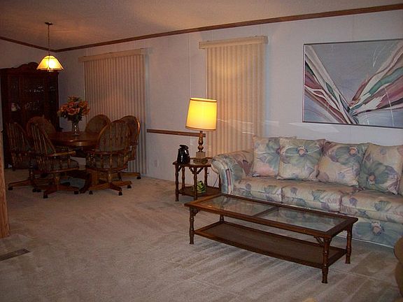 Immaculate, 3 bedroom, 2 bath, fully furnished home in a 55+ community. Home features open and airy living room and kitchen with center island, perfect for entertaining. Beautiful built-in designer glass cabinets. Vaulted ceilings with breezy ceiling fans throughout. Master suite is spacious with his and hers walk-in closets and step-in shower in master bath. Split bedroom design. Second and third bedrooms are generous in size with plenty of closet space. Guest bathroom has a shower/tub combo. Laundry area. Large shed provides additional storage or may be used for a workshop. Outdoor space provides a carport and plenty of covered shady areas, perfect for evening BBQ's. RV parking with full hook-ups for your RV or may rent space for additional income. Turn-Key Ready!