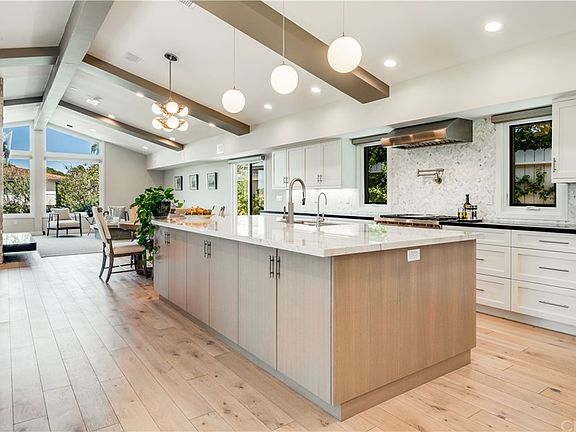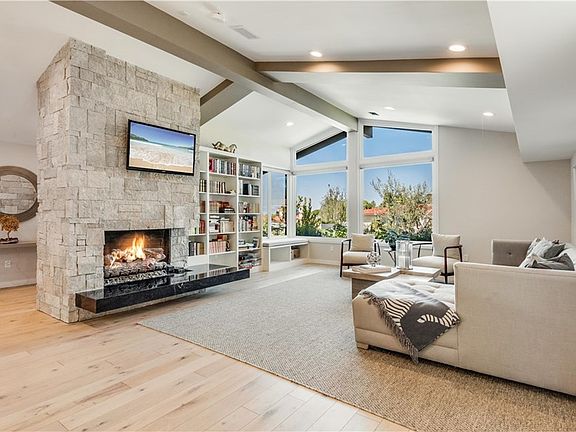 This newly-constructed, light-filled home sits on an expansive 11,693 SF lot. Warmth & luxury define the thoughtful layout, which includes 4 bedrooms all with en-suite bathrooms, totaling 4.5 baths over approx 3,150 SF, with vaulted ceilings throughout. The main level features a luxurious chef's kitchen with Wolf and Sub-Zero appliances, pantry, over-sized quartz island. This level also features a fireplace in the living room. French Oak flooring, with stone and tile. The outdoor space is fully curated w/ a resort-like 9' pool with a safety cover that can support up to 250 pounds & spa, generous lawn area for enjoying warm evenings under the sunset. The home's second story; here you'll find another master suite bedroom which to enjoy the partial ocean views. Lastly, the tandem 4 car garage is spacious, the home has a water filtration system and solar panel system for all the conveniences.