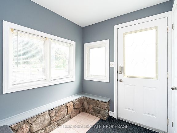 Top 5 Reasons You Will Love This Home: 1) Charming detached bungalow on a spacious lot in the village of Stroud, delivering comfort and convenience for first-time buyers or those seeking a cozy retirement property 2) Lovely curb appeal with soft grey-blue siding, a welcoming front entrance, mature trees, and a detached garage/shop that adds both charm and function 3) Bright and inviting interior filled with natural light, highlighted by a front vestibule and a living room centered around a stunning stone fireplace with an electric insert, ideal for crisp fall evenings or chilly winter days 4) Functional layout featuring a good-sized kitchen and breakfast area with a walkout to a wraparound side porch and large back deck, a spacious primary bedroom with mirrored closets, a second bedroom currently used as an office, a well-appointed 4-piece bathroom with updated cabinetry, and the convenience of main level laundry/mudroom with backyard access 5) The extra-deep detached garage is a true bonus, with two compartments, loft-style overhead storage, a wood stove, and additional heating, making it not only perfect for vehicles but also an excellent workshop for hobbyists or mechanics. 968 sq.ft.