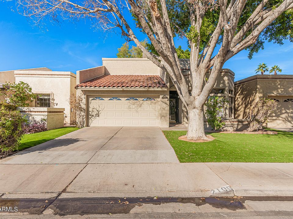 Welcome home to Dobson Ranch, in the tight knit community of Laguna Village! This charming home is fully equipped with 4bdrms/3 full bathrooms.The first floor features wood flooring, a bedroom with a spacious closet, built in bookshelves, backyard access & a full bath. You'll love the high ceilings, sunny bright eat in kitchen, complete with white cabinets & granite countertops.The great room provides an abundance of natural light, the beautifully updated wood burning fireplace, formal dining room, wet bar & an extended covered patio, perfect for entertaining. The spacious backyard features lush green plants, trees, a paved built in courtyard, plenty of shade and a fountain. GREAT LOCATION! Within walking distance of Dobson Ranch Golf Course, restaurants, shopping, parks & rec, fishing..